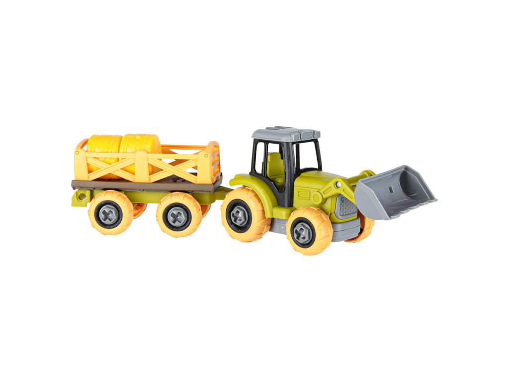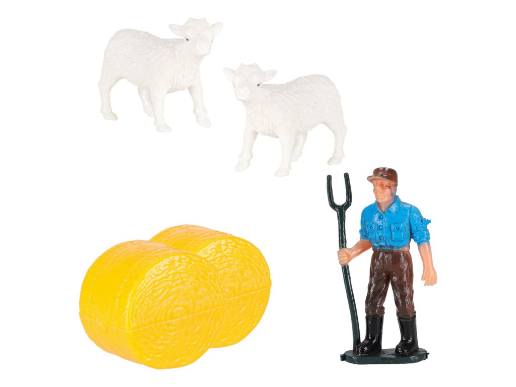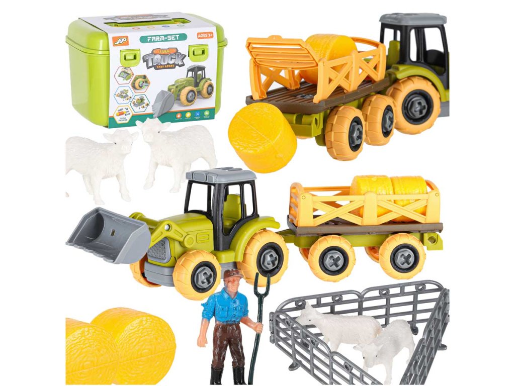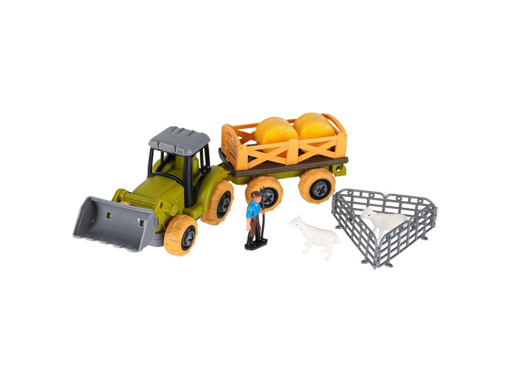 Farmársky taktor so súpravou pre malých farmárov. Obsahuje traktor, príves, jahňatá, farmára, skrutkovač s krytkami, seno, prekážky. Rozmery: traktor 14x8x9 cm, príves 15x8x4,5 cm. Sada je vhodná pre deti od 3 rokov. Skvelý darček v praktickej plastovej škatuli.