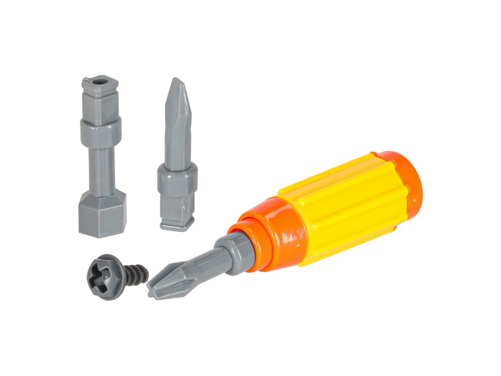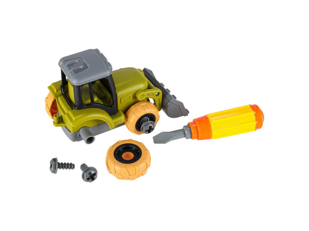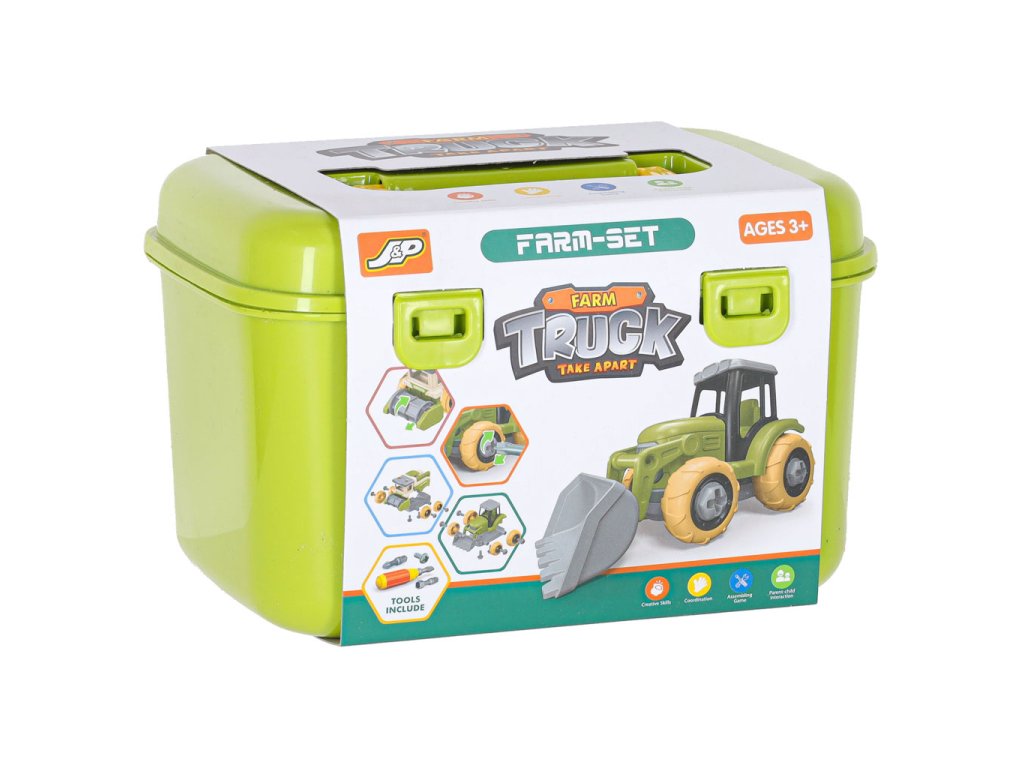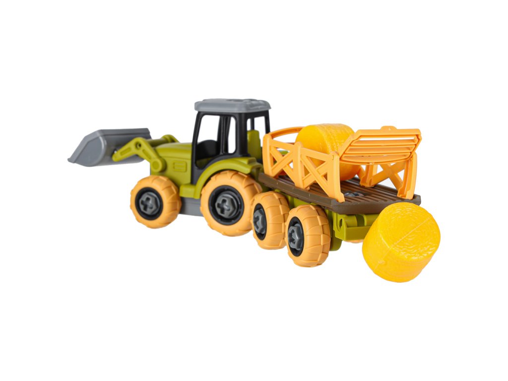 Farmársky taktor so súpravou pre malých farmárov. Obsahuje traktor, príves, jahňatá, farmára, skrutkovač s krytkami, seno, prekážky. Rozmery: traktor 14x8x9 cm, príves 15x8x4,5 cm. Sada je vhodná pre deti od 3 rokov. Skvelý darček v praktickej plastovej škatuli.
