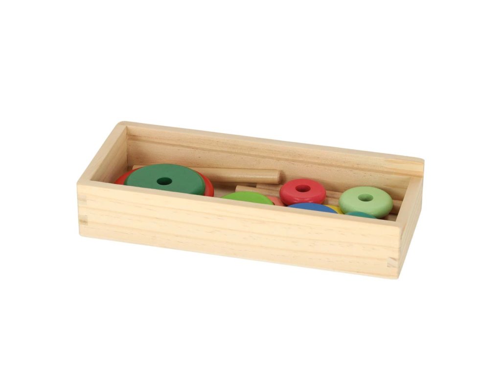 Umiestňovanie diskov na palice pomáha rozvíjať manuálne zručnosti a koordináciu ruka-oko.