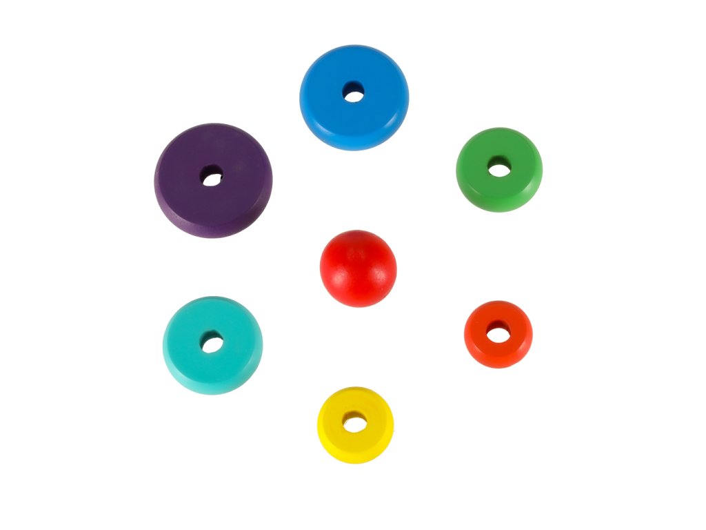 Umiestnenie obruče na tyč rozvíja zručnosť dieťaťa a podporuje zmyslovú integráciu. Hračku možno použiť aj na výučbu farieb.
