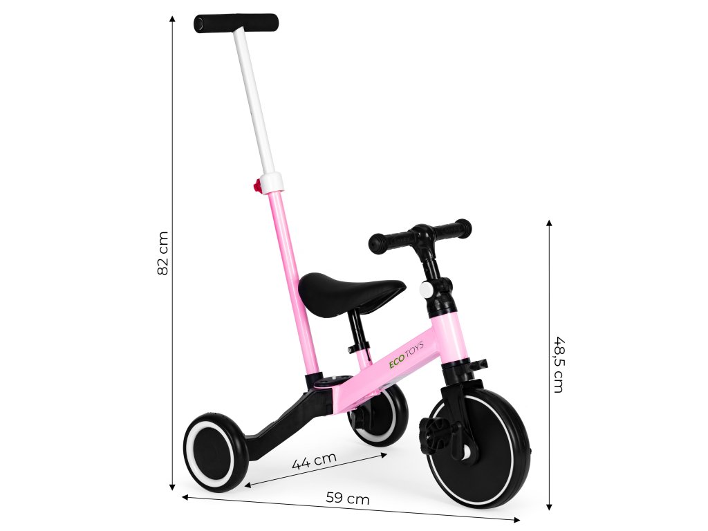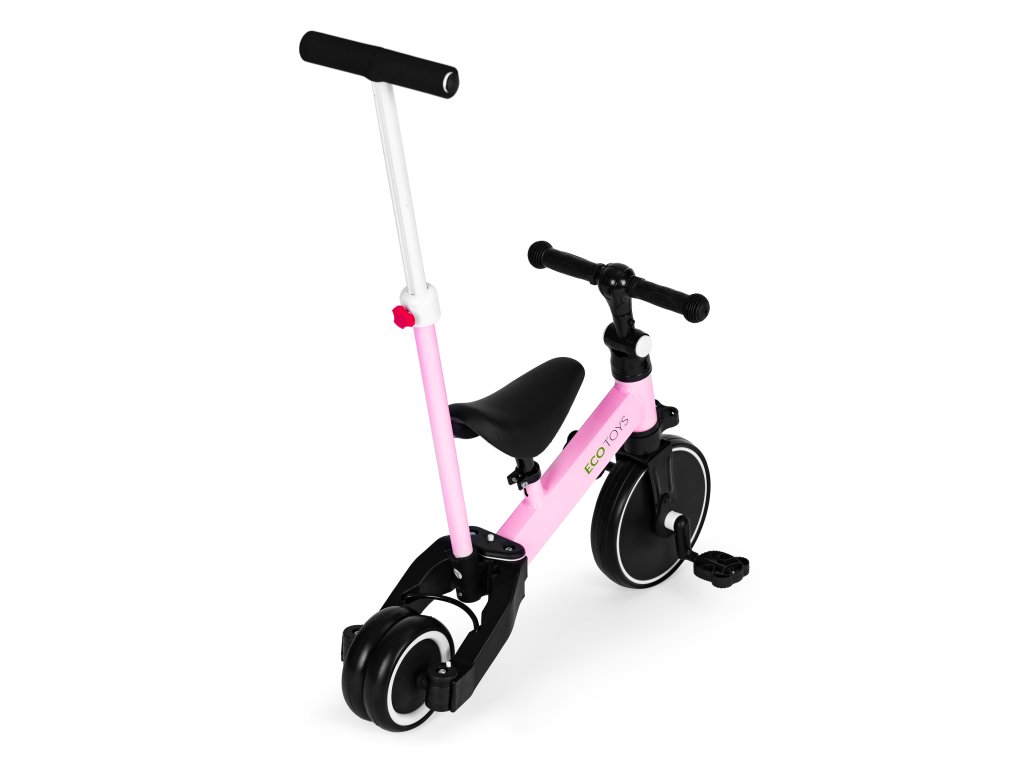 Možnosť prestavba bežeckého bicykla na tradičný bicykel poháňaný pedálmi umožňuje dieťaťu začať lekcie bezpečnej jazdy na tomto type bicykla. Mäkké sedlo a protišmykové rukoväte poskytujú hodiny pohodlného hrania . Kolesá vozidla sú vyrobené z plast EVA, prostredníctvom ktorých sú odolné voči prepichnutiu. Vďaka tomu je bicykel vhodný na používanie oboje doma aj na prechádzkach.