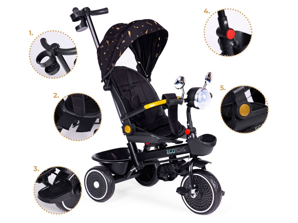 Objavte trojkolku od spoločnosti ECOTOYS, ideálny spoločník na detské prechádzky a dobrodružstvá, ktorý spája mnoho praktických riešení, aby vášmu dieťaťu poskytol pohodlná a bezpečná hra . Bicykel je navrhnutý tak, aby rástol spolu s vaším dieťaťom a prispôsoboval sa jeho veku a potrebám. Nie je to len dopravný prostriedok - je to investícia do šťastných a bezpečných chvíľ vášho dieťaťa.