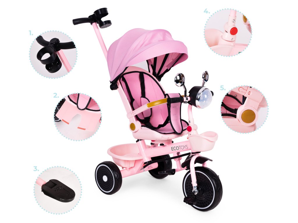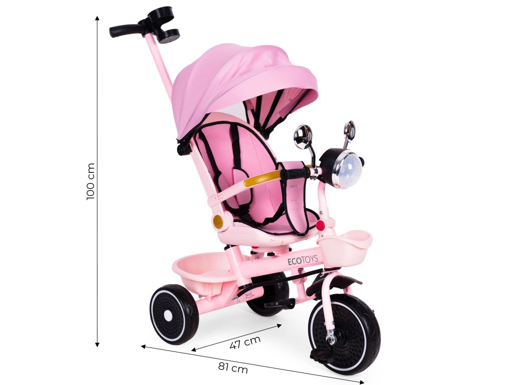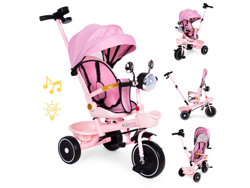 Detská trojkolka ECOTOYS s otočným sedadlom 360°, ružová
