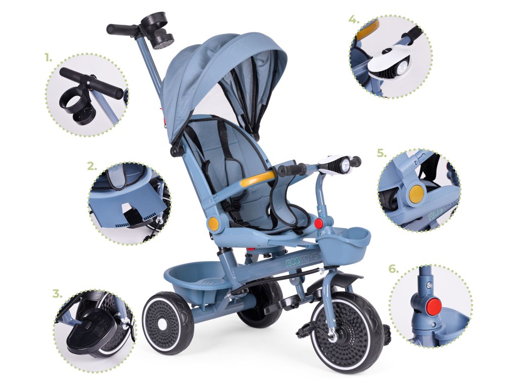 Zoznámte sa s trojkolkou od ECOTOYS - ideálny partner na detské prechádzky a dobrodružstvá. Je to jedinečná kombinácia funkčnosti a bezpečnosti, ktorá poskytuje vášmu dieťaťu pohodlné a bezstarostné hranie. Bicykel bol navrhnutý s ohľadom na potreby rastúceho batoľaťa - sa prispôsobuje svojmu veku a vývojovému štádiu. Je to nielen praktický dopravný prostriedok, ale predovšetkým investícia do šťastné a bezpečné chvíle Vaše dieťa.