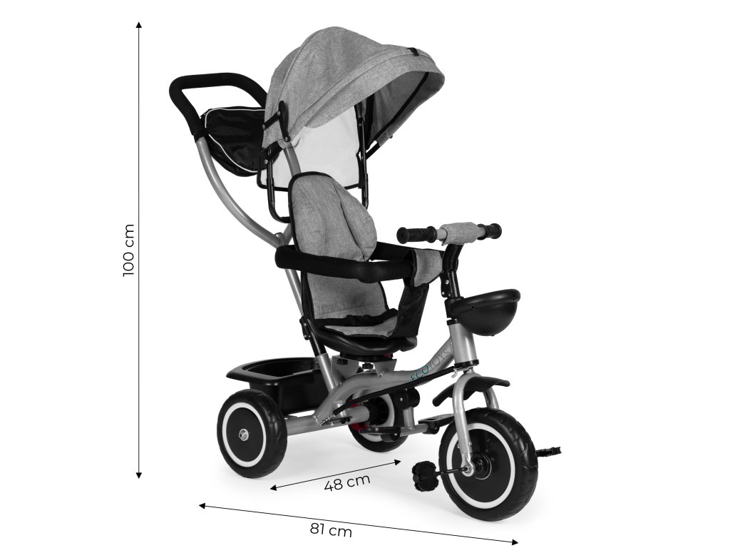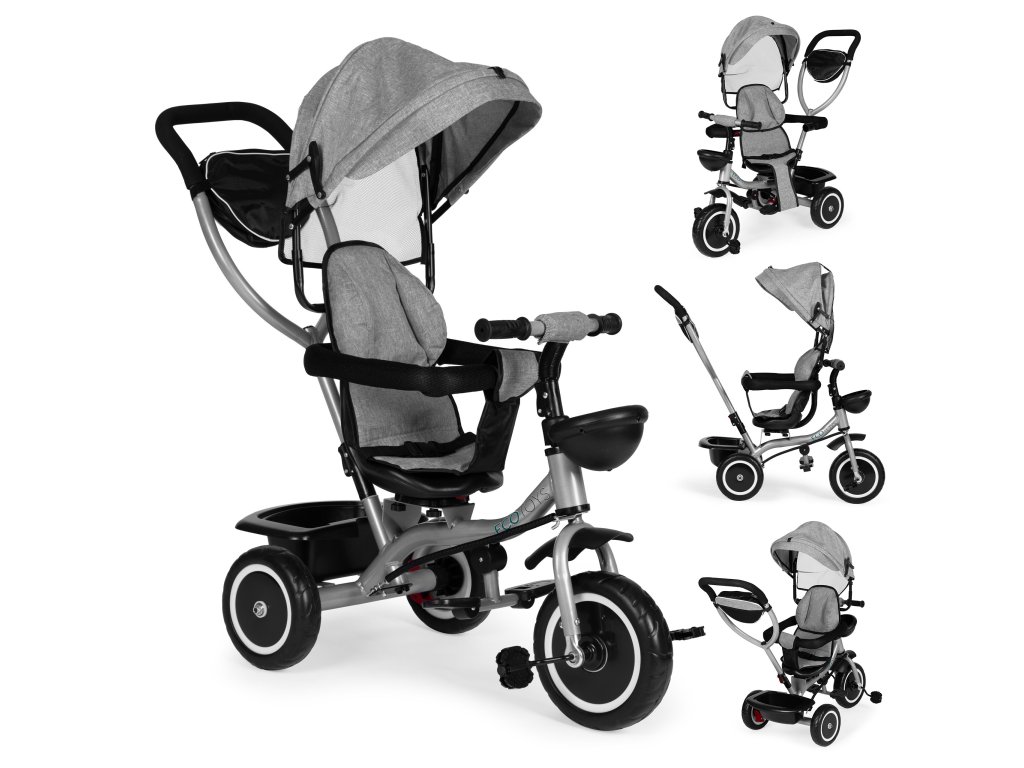 Trojkolka 2v1 otočné sedadlo a skladacia strieška - sivá ECOTOYS