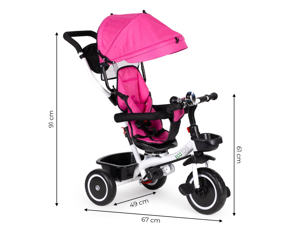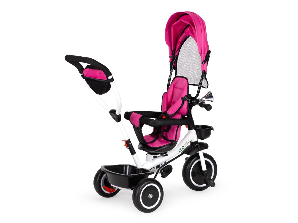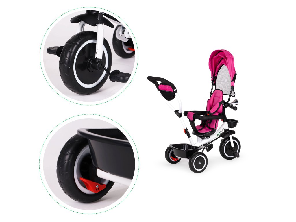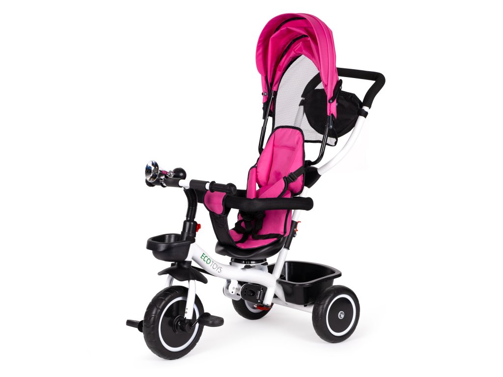Bicykel ECOTOYS v sebe spája množstvo praktických funkcií, ktoré zabezpečia, aby vaše dieťa pohodlná a bezpečná hra. Bicykel má mäkké a pohodlné operadlo, aby batoľa pohodlne sedelo a bezpečnostné pásy a zábrany proti vypadnutiu zo sedadla. Skladacia strieška chráni pred slnkom a dažďom a špeciálne tvarované rám spolu s otočné sedadlo uľahčiť nástup najmenším deťom.