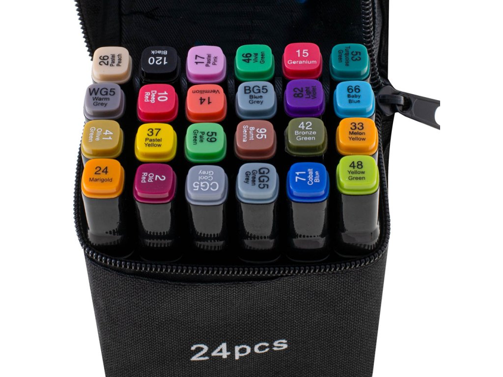 Vďaka 24 alkoholovým fixkám budú skvelou voľbou, či už ste architekt, grafický dizajnér, skúsený ilustrátor alebo začínajúci umelec. Fixy sú skvelé pre každého - môžete kresliť, písať, ilustrovať, skicovať, tieňovať, navrhovať, vyfarbovať atď.
