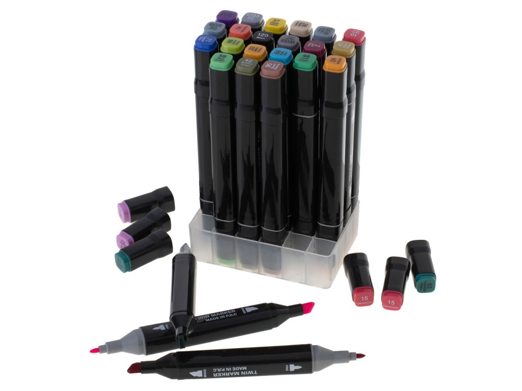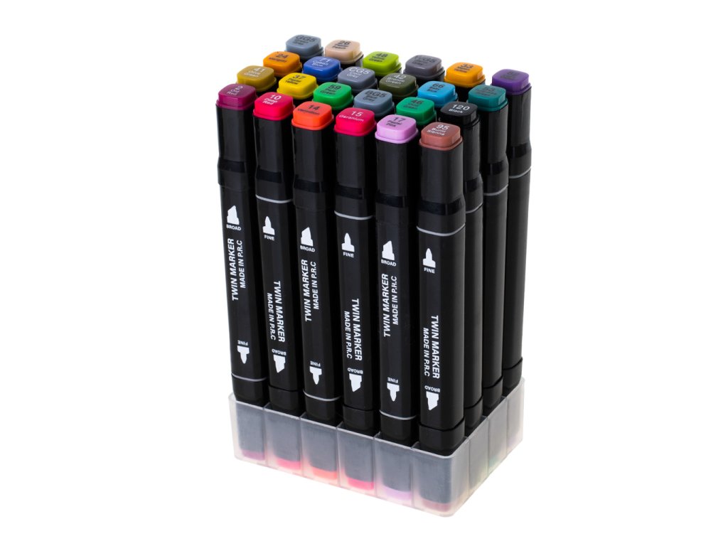 Obojstranné alkoholové fixky v puzdre 24 + stojan