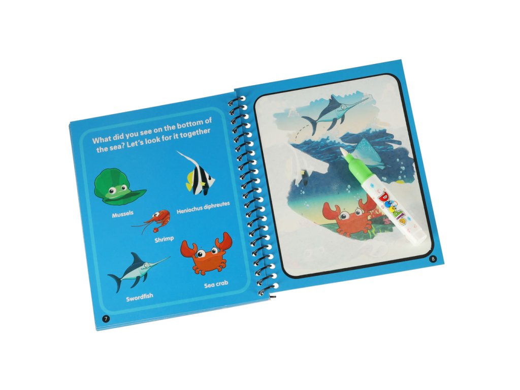 Vodná kniha s fixkou morské živočíchy modrá