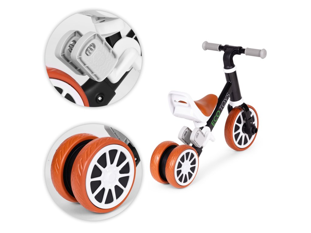 - Bicykel ECOTOYS kombinuje množstvo praktických riešení, ktoré vášmu dieťaťu pohodlná a bezpečná hra. Kolo má mäkké, pohodlné sedadlo s rukoväťou ktoré umožnia batoľaťu ľahko nastúpiť. Okrem toho umožní aj lekcie bezpečnej jazdy s pomocou rodiča.