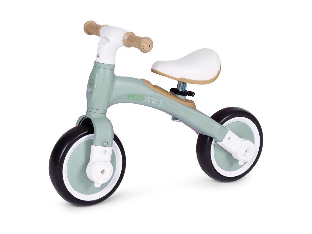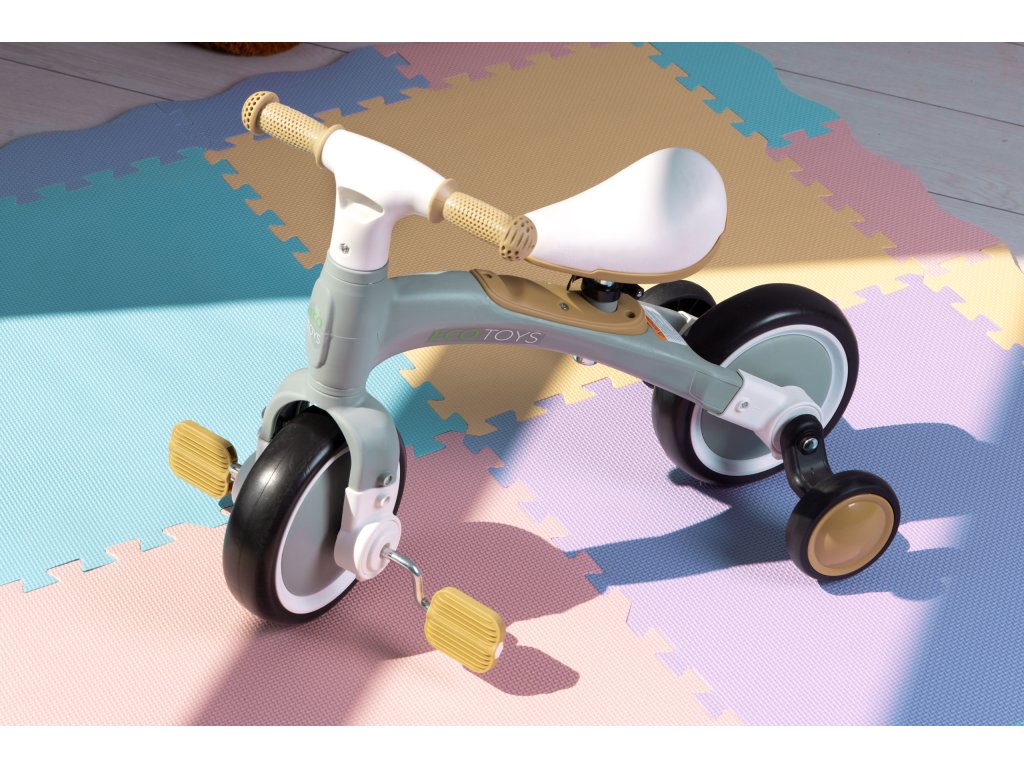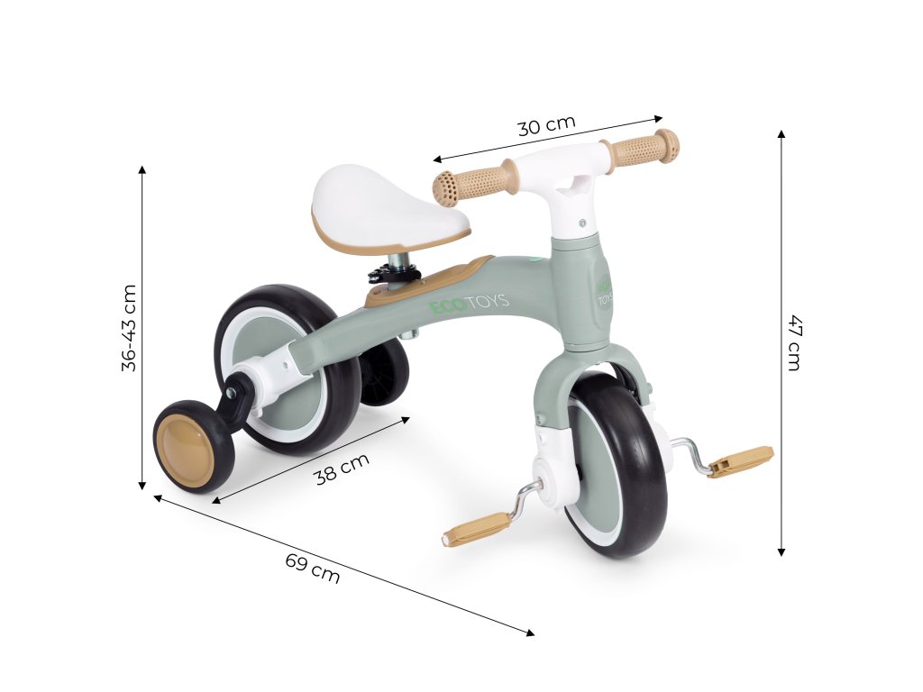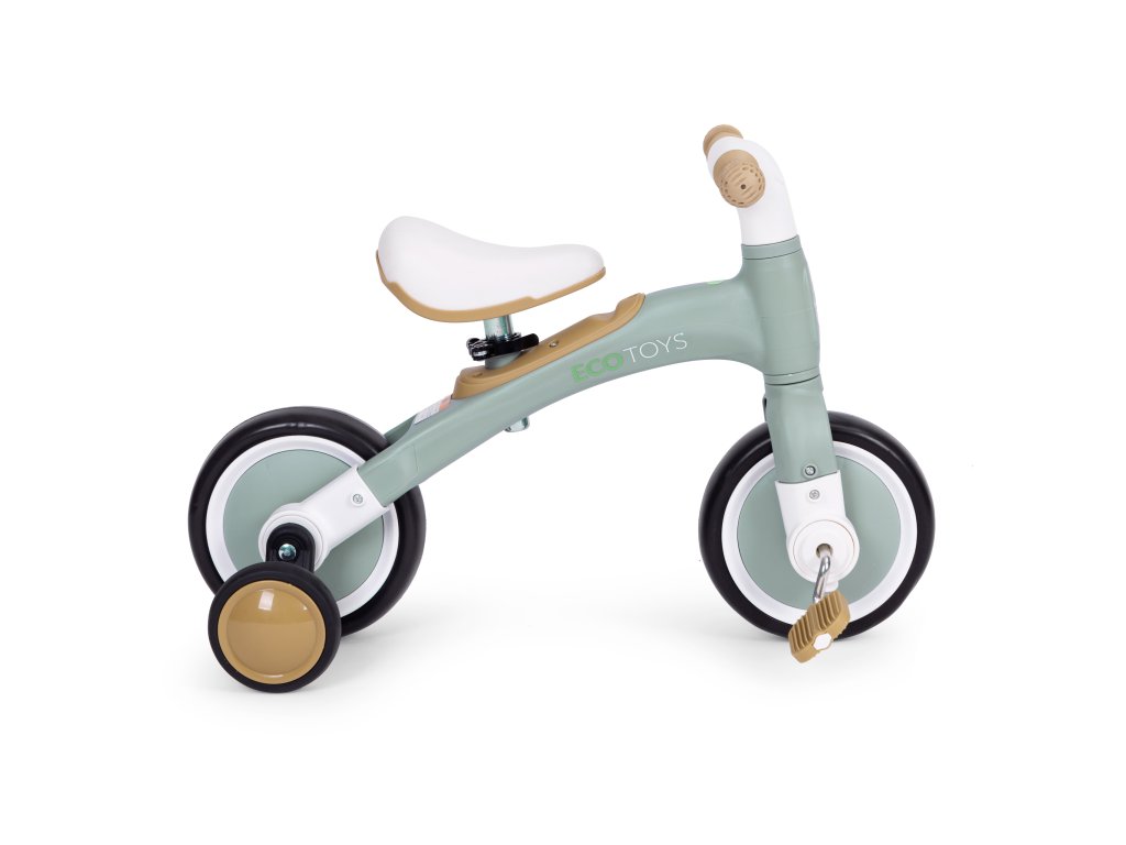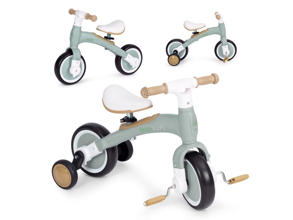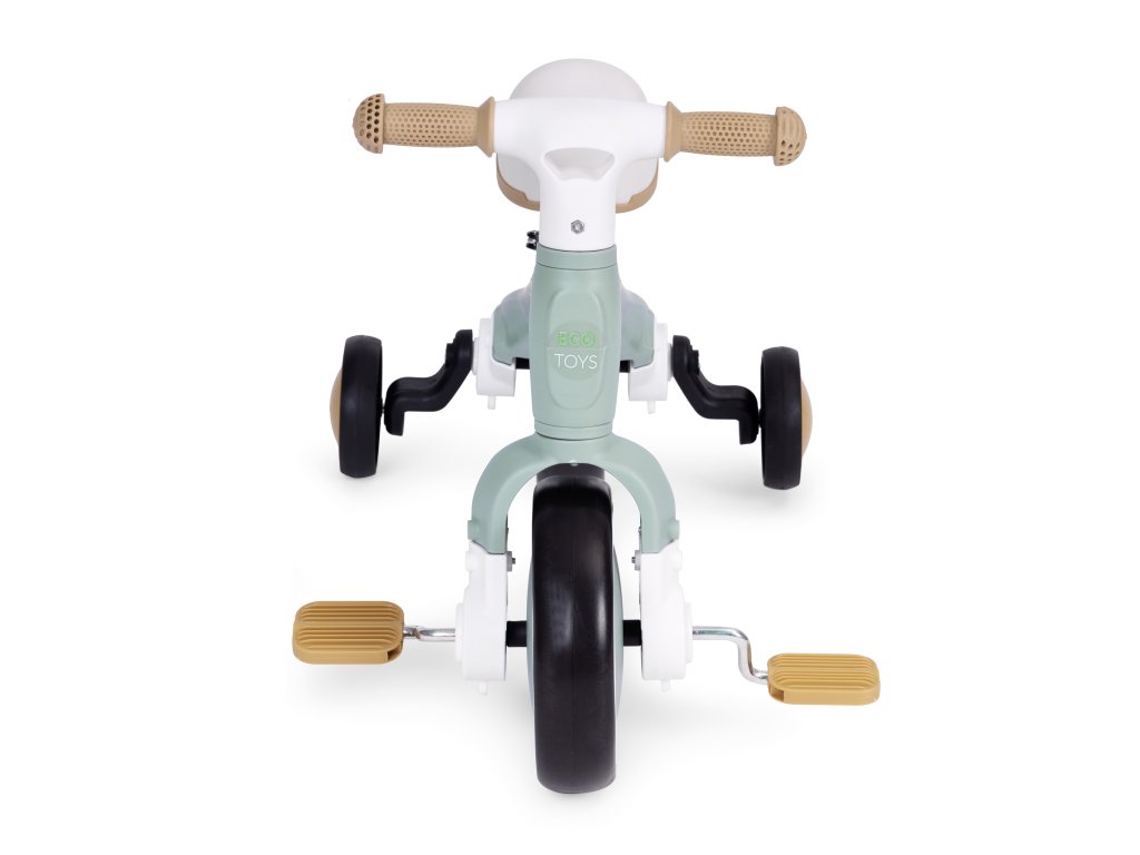 ECOTOYS zelené odrážadlo 3v1 s pedálmi a pomocnými kolieskami