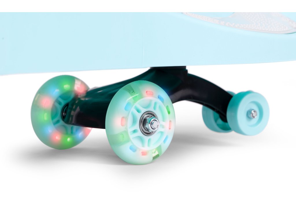 Jazda je vybavené LED kolieskami, ktoré sa po uvedení do pohybu rozsvietia. Vďaka tomu je večerná hra ešte vzrušujúcejšia a zábavnejšia. Svietiace kolieska nielen upútajú pozornosť, ale aj zvyšujú viditeľnosť dieťaťa po zotmení, čo sa prejavuje vo väčšej bezpečnosti počas večerných prechádzok.