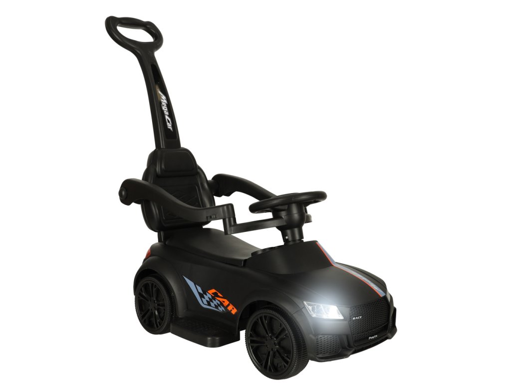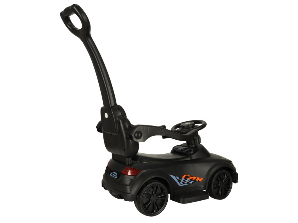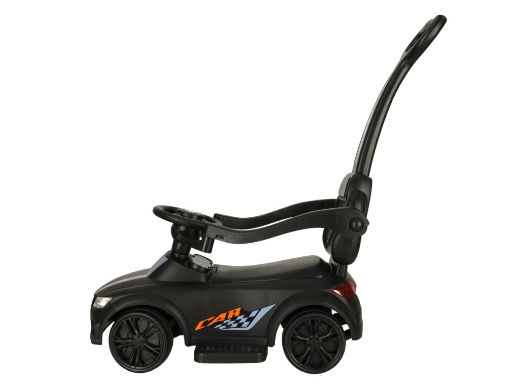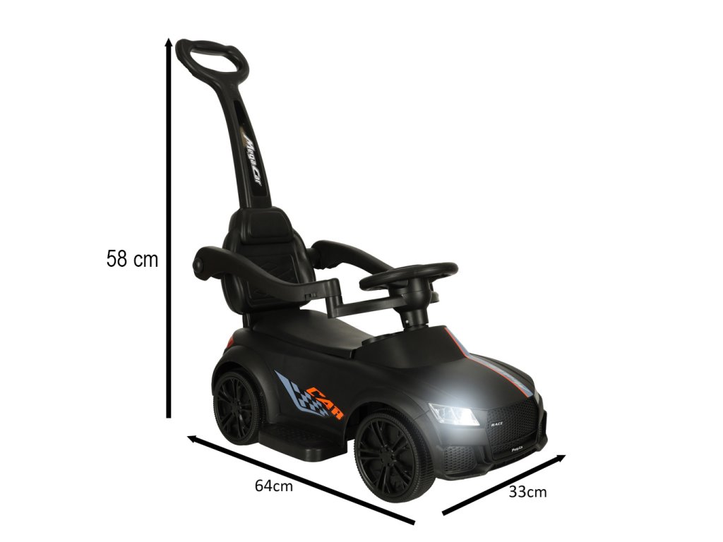 Autíčko na tlačenie so zvukom a svetlami v čiernej farbe je dokonalou zábavou pre deti od 3 do 6 rokov. S funkcionalitou svetiel a realistickými zvukmi ponúka nekonečné hodiny zábavy. S možnosťou jednoduchej výmeny 3 batérií AA je pripravené na nekonečné dobrodružstvá. Rozmery autíčka sú 64 cm x 33 cm x 58 cm, pričom je vhodné pre deti s maximálnou váhou 23 kg. Čas začať pretekať a vytvoriť skutočnú dráhu plnú zábavy!