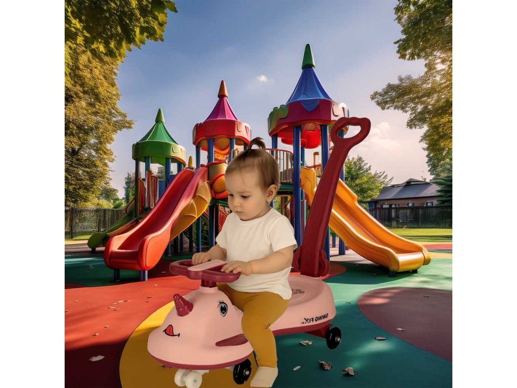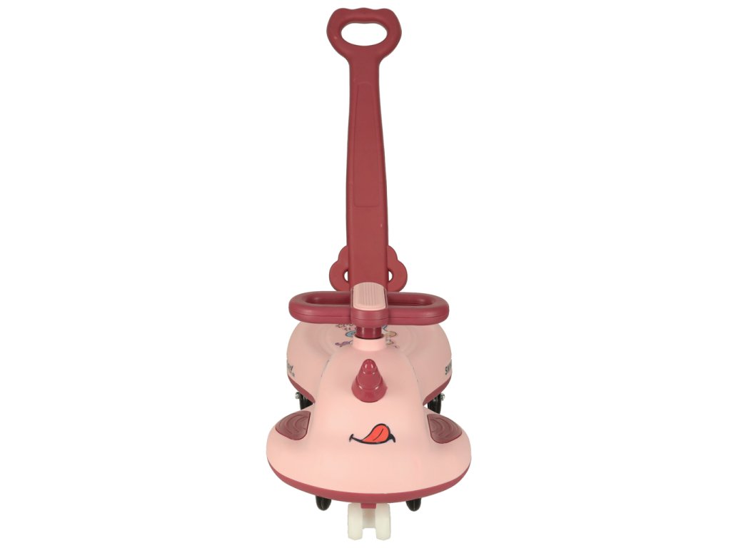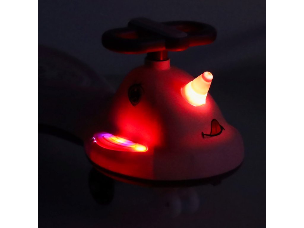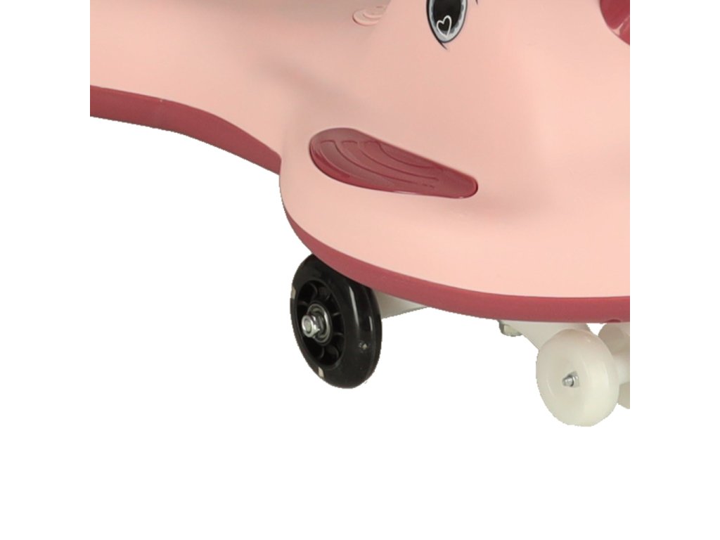 Rozkošné svietiace LED kolieska zvyšujú atraktivitujazdy a zároveň zlepšujúviditeľnosť kolotoča počas hry. Protišmykové kolieska poskytujú skvelúpriľnavosť k zemi, čo prispieva k bezpečnosti používania. Vďaka nim je dynamická jazda nielen pôsobivá, ale aj stabilná. Nízko posadené sedadlo zaručuje pohodlnú polohu a ergonomický dizajn je prispôsobený potrebám detí od 3 rokov.