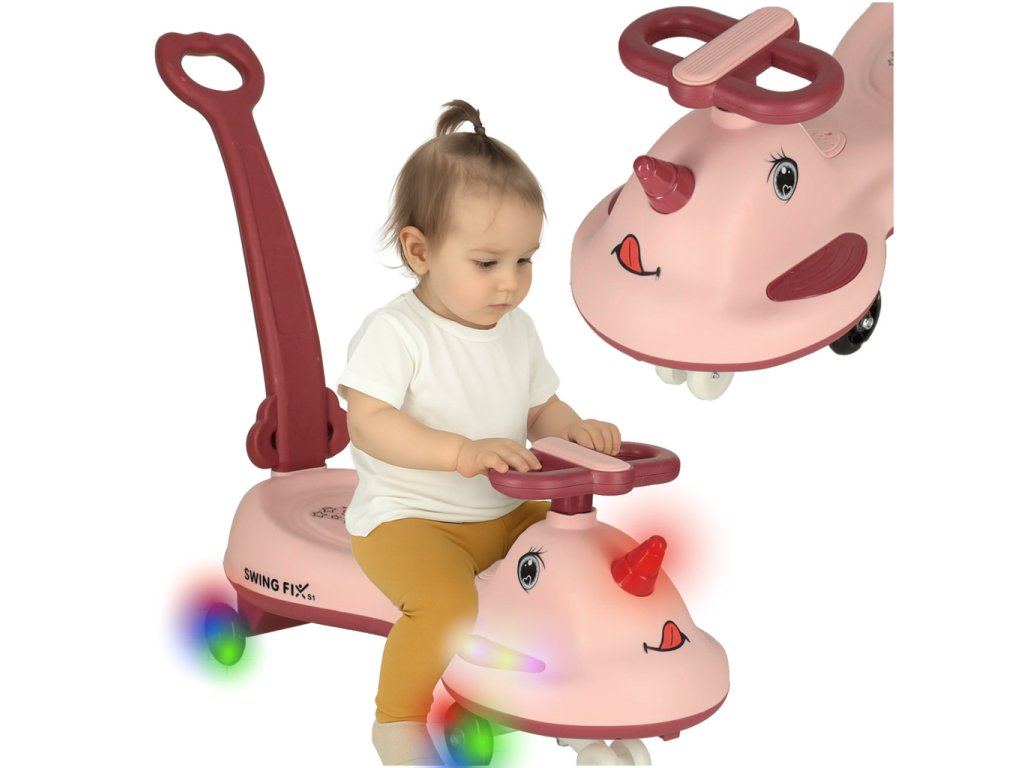 LED balančné odrážadlo Swing FIX S1 s rukoväťou ružové, max. 65 kg