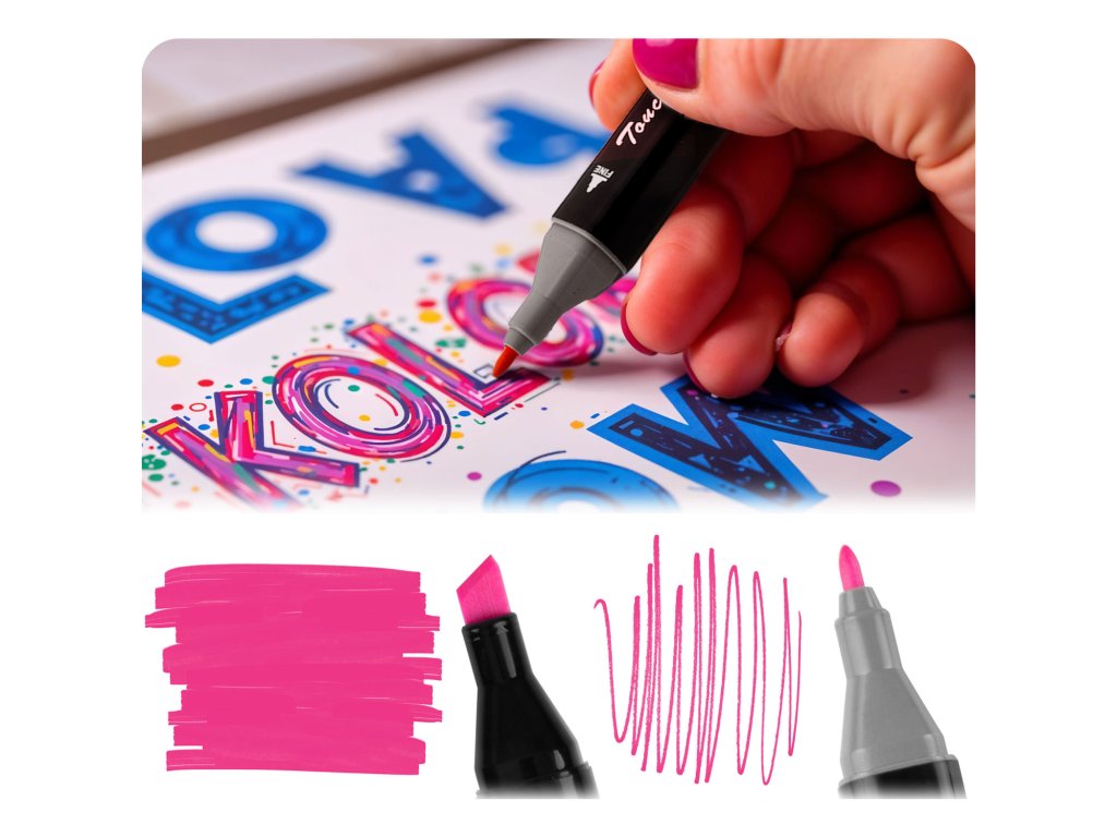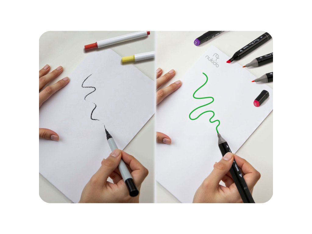 - Popisovače s dvoma hrotmi sú ideálne na učenie kaligrafie a písania.