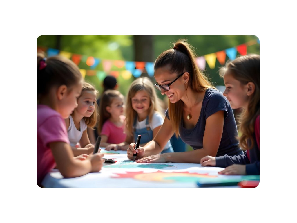 - Kreatívny stretnutia, ktoré spájajú generácie, umožňujú deťom a dospelým spoločne tvoriť, objavovať farby a užívať si radosť z tvorivej hry.