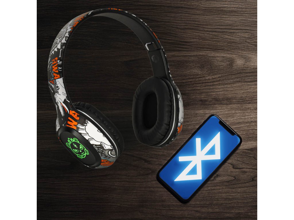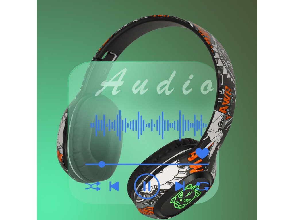 Bezdrôtové slúchadlá bluetooth s osvetlením sa vyznačujú originálnym dizajnom. Farebný kryt s multimediálnymi prvkami zachovanými v modernej estetike priťahuje pozornosť a vzbudzuje záujem detí aj dospelých. Ku kvalite počuteľného zvuku pozitívne prispievajú 50 mm meniče. Vstavané tlačidlá umožňujú pohodlné ovládanie hlasitosti alebo zmenu skladby bez priamej interakcie s externým prehrávačom.