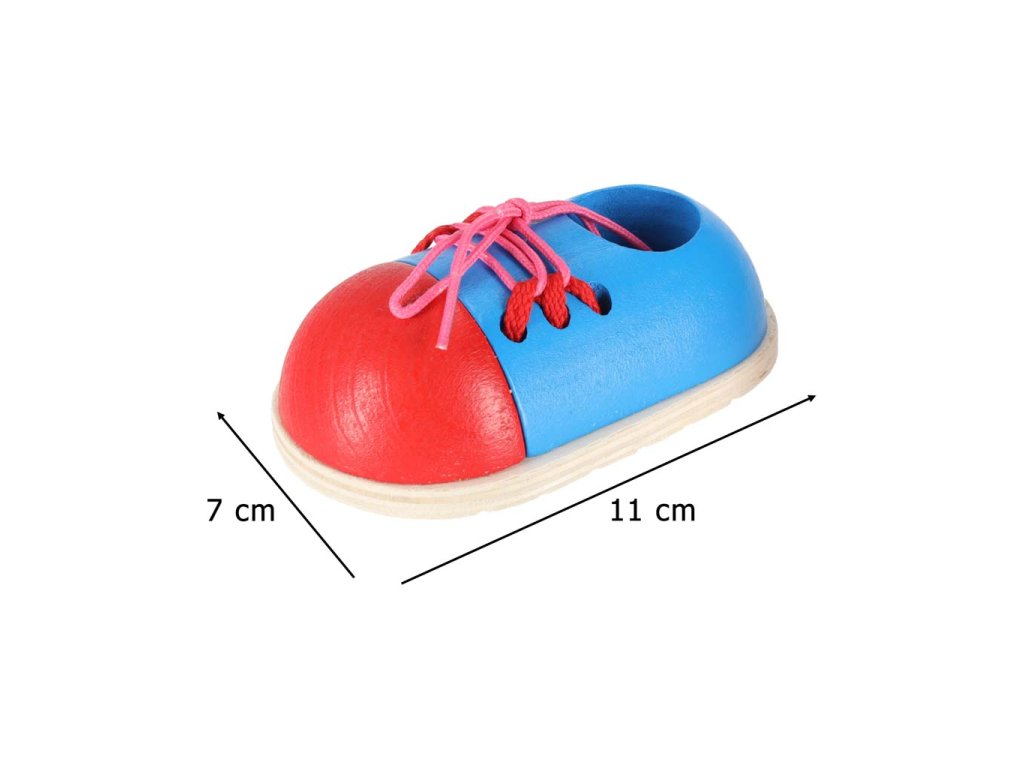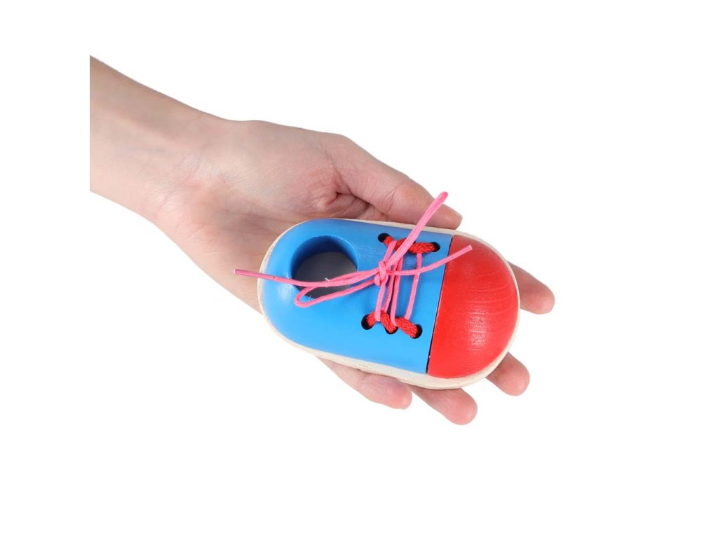 Naučte svoje dieťa zaväzovať šnúrky s touto vzdelávacou hračkou! Vyrobená z kvalitného dreva podporuje rozvoj zručností a logického myslenia. Ideálna na učenie sa zaväzovania topánok. Kompaktné rozmery a praktické skladovanie. Obsahuje 2 drevené topánky a šnúrky. Rozmery: 11 cm x 7 cm.