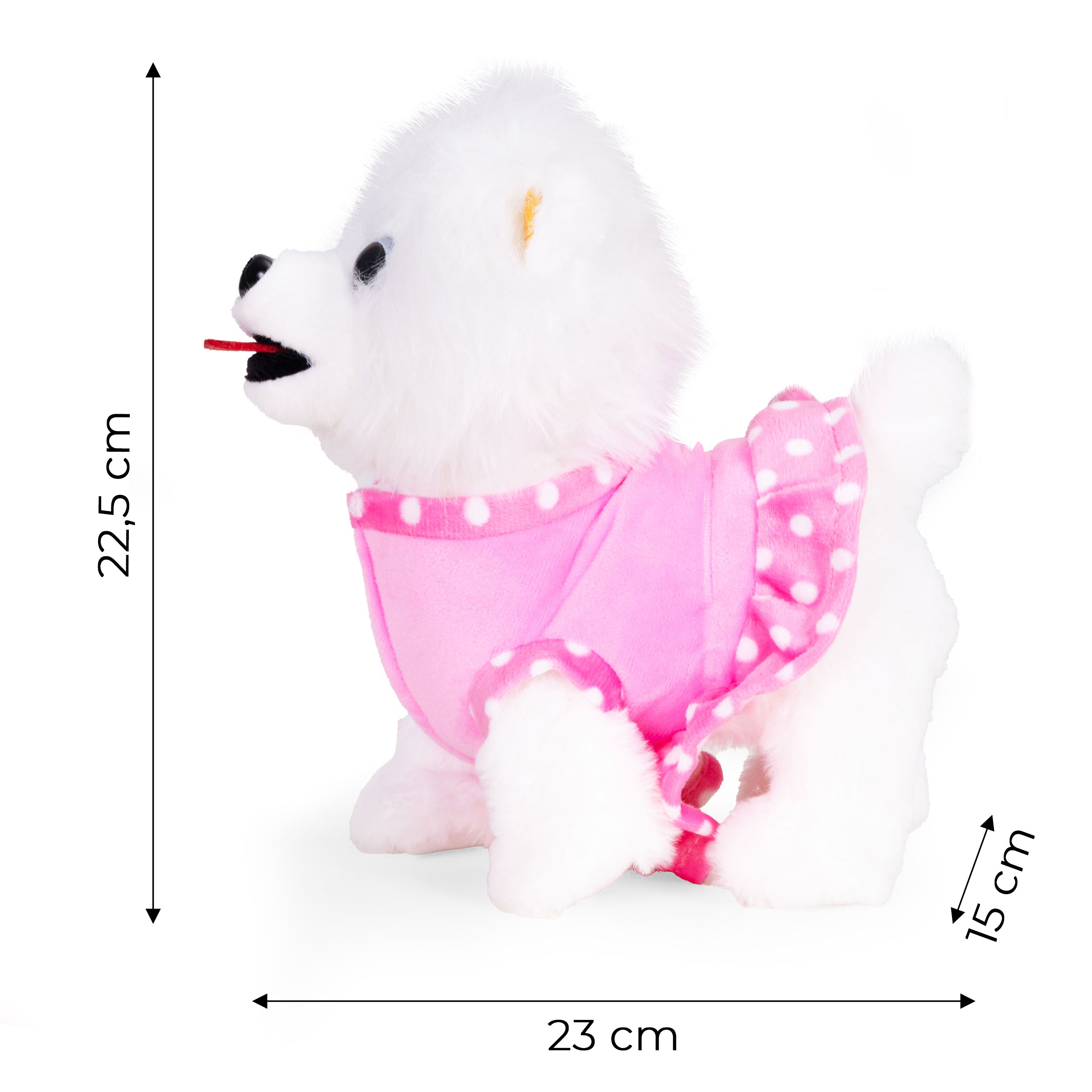- Interaktívny pes reaguje na stlačenie tlačidla na vodítku -chodí, vrtí chvostom, hýbe hlavou a hrá sa viac ako 20 melódií. Vďaka realistickým pohybom má dieťa dojem kontaktu so skutočným zvieraťom, čo prehlbuje jeho zaangažovanosť a robí hru vzrušujúcejšou.