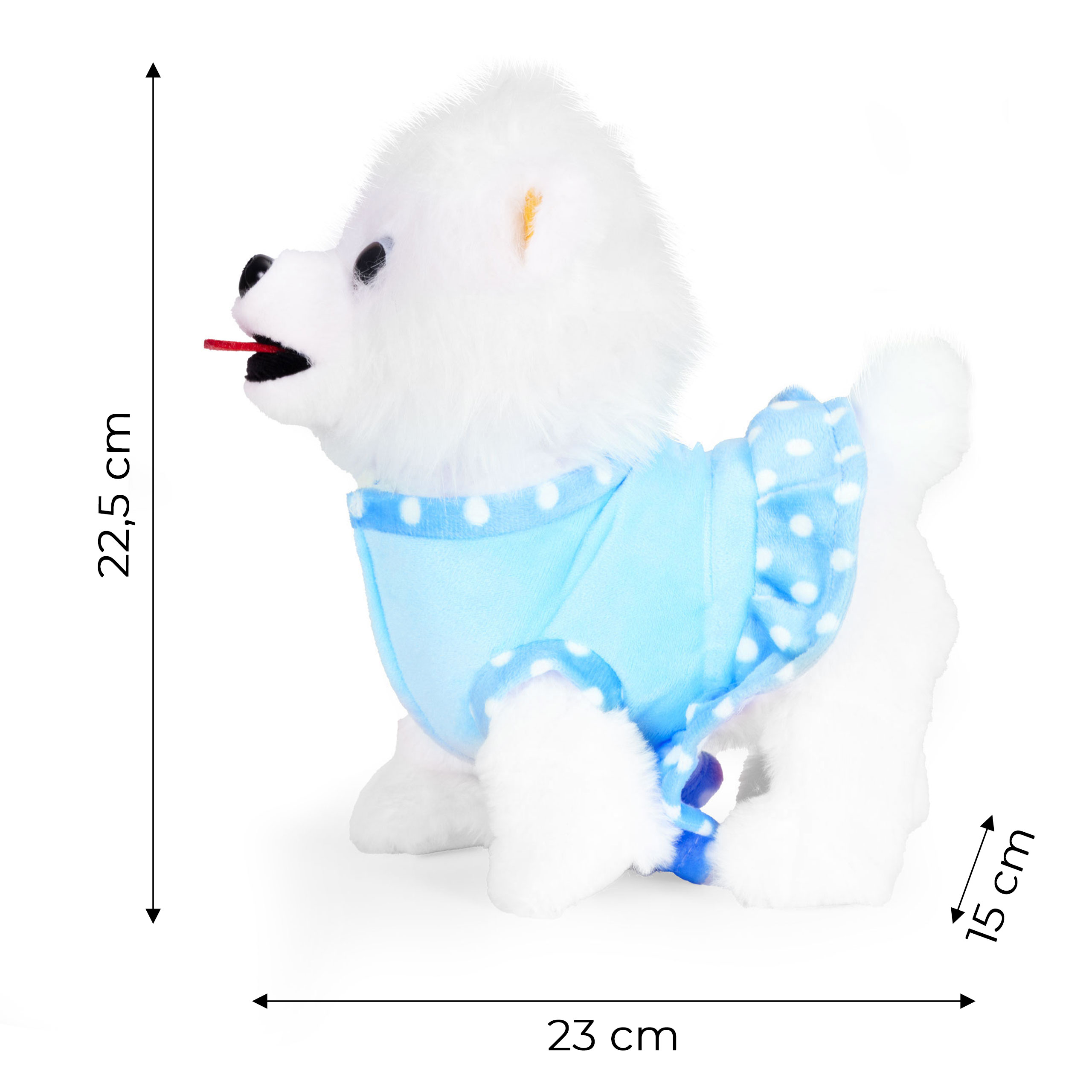 Každé dieťa chce mať svoje vlastné rozkošné zvieratkoa interaktívny pes na vodítku túto úlohu dokonale plní a od prvej chvíle priťahuje pozornosť. Je to dokonalý kamarát na hranie, ktorýučí najmenšie deti, čo je to starostlivosť, odhodlanie a zodpovednosť.Vďaka realistickým reakciám - chôdzi, vrteniu chvostom a priateľským zvukom - sa dieťa prirodzene vžije do úlohy opatrovateľa,rozvíjanie empatie a vytváranie návykov každodennej starostlivosti. Priložené príslušenstvo, ako napríklad miska, jedlo a sušienky, inšpiruje k tvorivej hre ahranie rolí, a zároveň podporuje rozvoj manuálnych zručností.