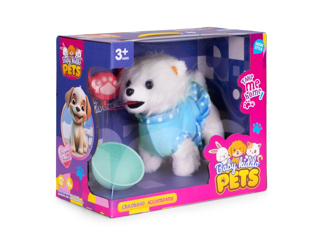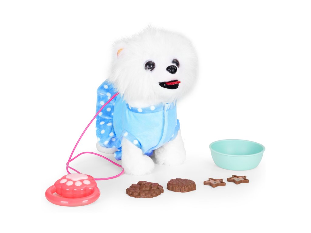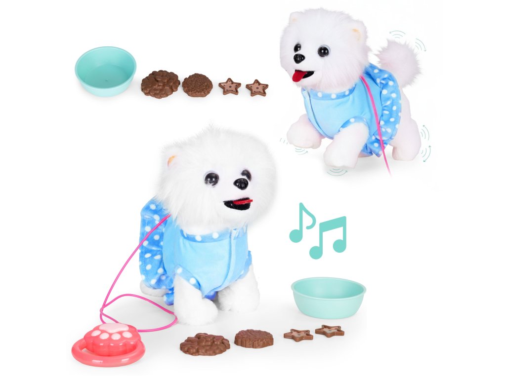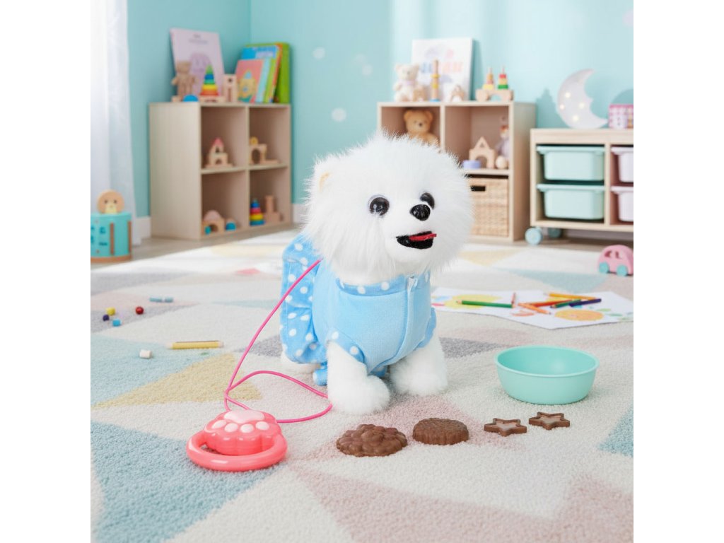 Každé dieťa chce mať svoje vlastné rozkošné zvieratkoa interaktívny pes na vodítku túto úlohu dokonale plní a od prvej chvíle priťahuje pozornosť. Je to dokonalý kamarát na hranie, ktorýučí najmenšie deti, čo je to starostlivosť, odhodlanie a zodpovednosť.Vďaka realistickým reakciám - chôdzi, vrteniu chvostom a priateľským zvukom - sa dieťa prirodzene vžije do úlohy opatrovateľa,rozvíjanie empatie a vytváranie návykov každodennej starostlivosti. Priložené príslušenstvo, ako napríklad miska, jedlo a sušienky, inšpiruje k tvorivej hre ahranie rolí, a zároveň podporuje rozvoj manuálnych zručností.