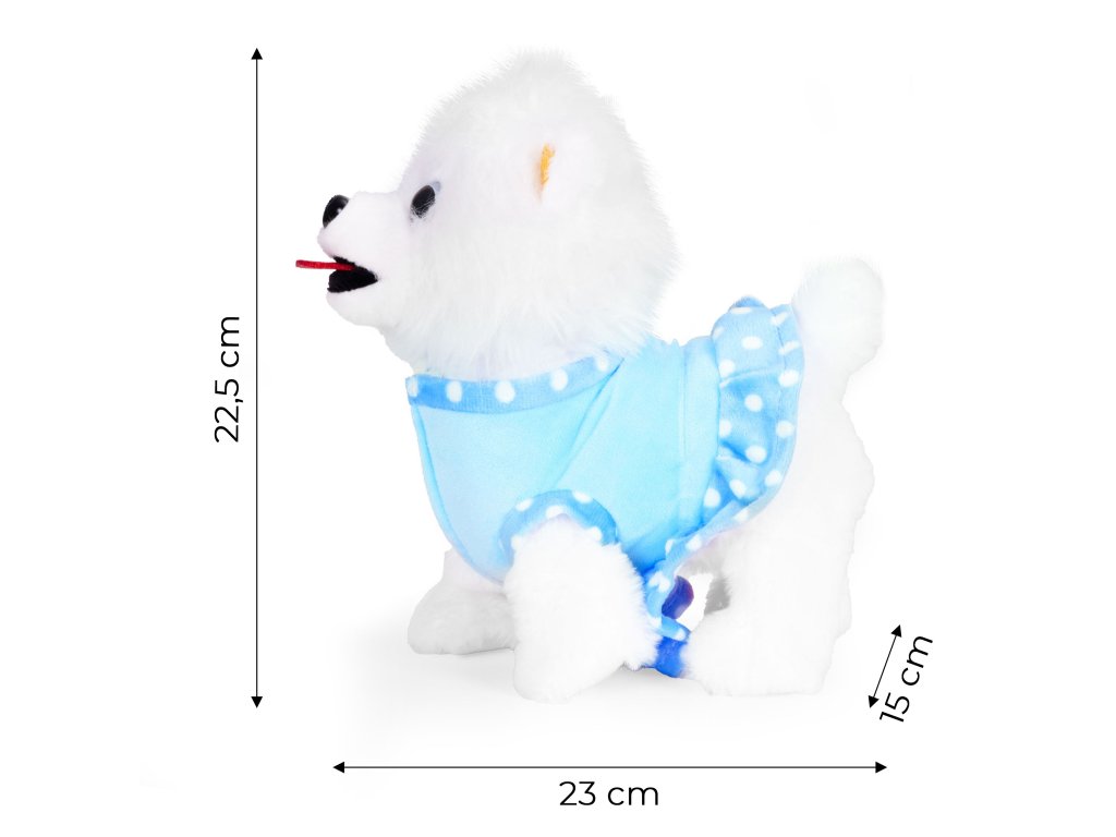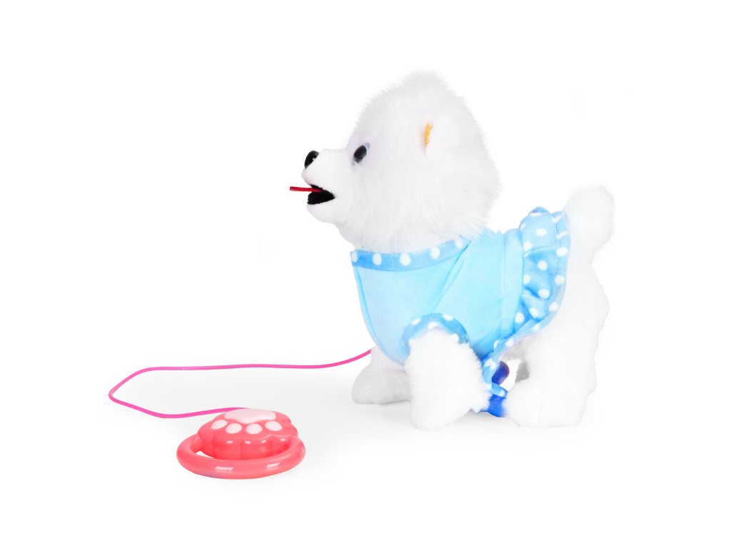 - Interaktívny pes reaguje na stlačenie tlačidla na vodítku -chodí, vrtí chvostom, hýbe hlavou a hrá sa viac ako 20 melódií. Vďaka realistickým pohybom má dieťa dojem kontaktu so skutočným zvieraťom, čo prehlbuje jeho zaangažovanosť a robí hru vzrušujúcejšou.
