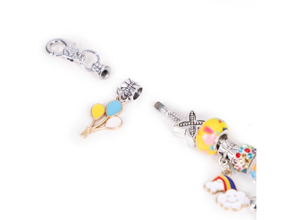 - Korálky (16 kusov) - výrazné a rozmanité: pastelové, trblietavé, dúhové. Vďaka veľkým otvorom sa ľahko navliekajú a ich živé farby a ľahkosť umožňujú vytvárať jedinečné kompozície.