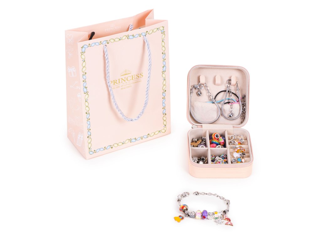 Súprava obsahuje praktický organizér ktorá pomáha udržiavať príslušenstvo v poriadku. Vďaka priehradkám má každý predmet svoje miesto a dieťa sa učí starať sa o svoje poklady. Celú súpravu možno zabaliť do krásna taška "Princess" - ideálny na darovanie darčekov a navyše si môžete elegantne zabaliť vlastné ozdoby.