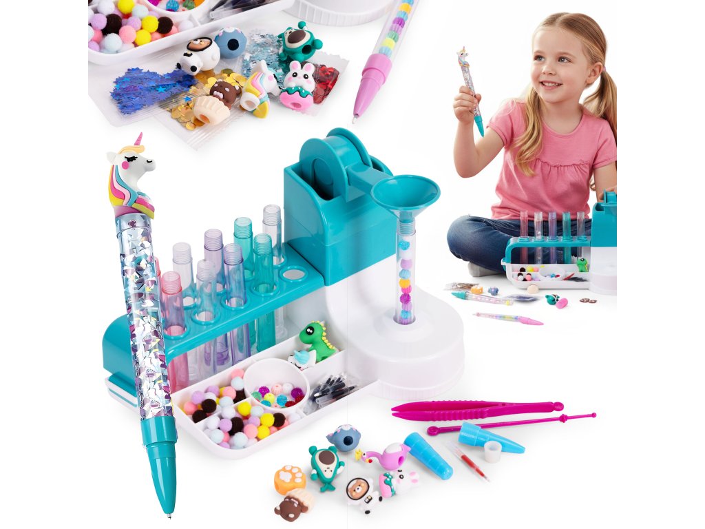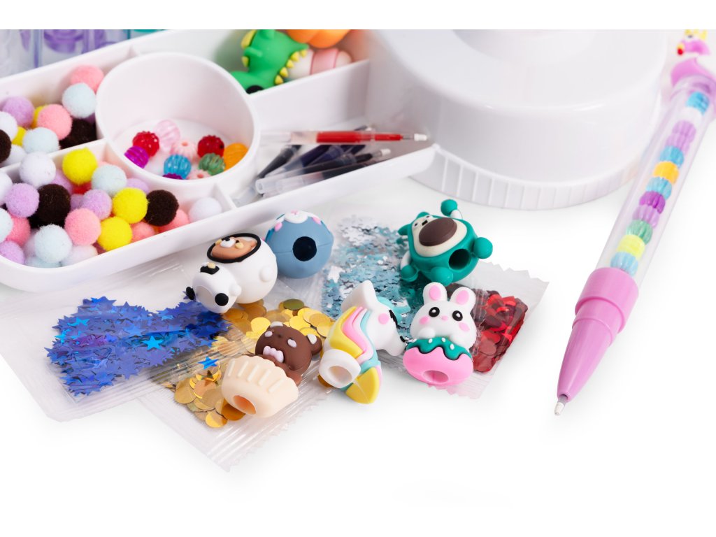 Objavte svet, v ktorom sa obyčajné pero stáva umeleckým dielom!Súprava na výrobu pera DIY je jedinečná hračka, ktorá stimulujepredstavivosť a tvorivosť každé dieťa. Vnútri na vás čaká viac ako 50 farebných doplnkov - trblietky, bambuľky, korálky a rozkošné zvieratká - všetko, čo potrebujete na vytvorenie až 10 jedinečných vzorov. Je to nielen skvelá zábava, ale ajcvičenie koncentrácie, plánovania a manuálnych zručností. Darujte svojmu dieťaťu nielen hračku, alenástroj pre kreatívny rozvoj.