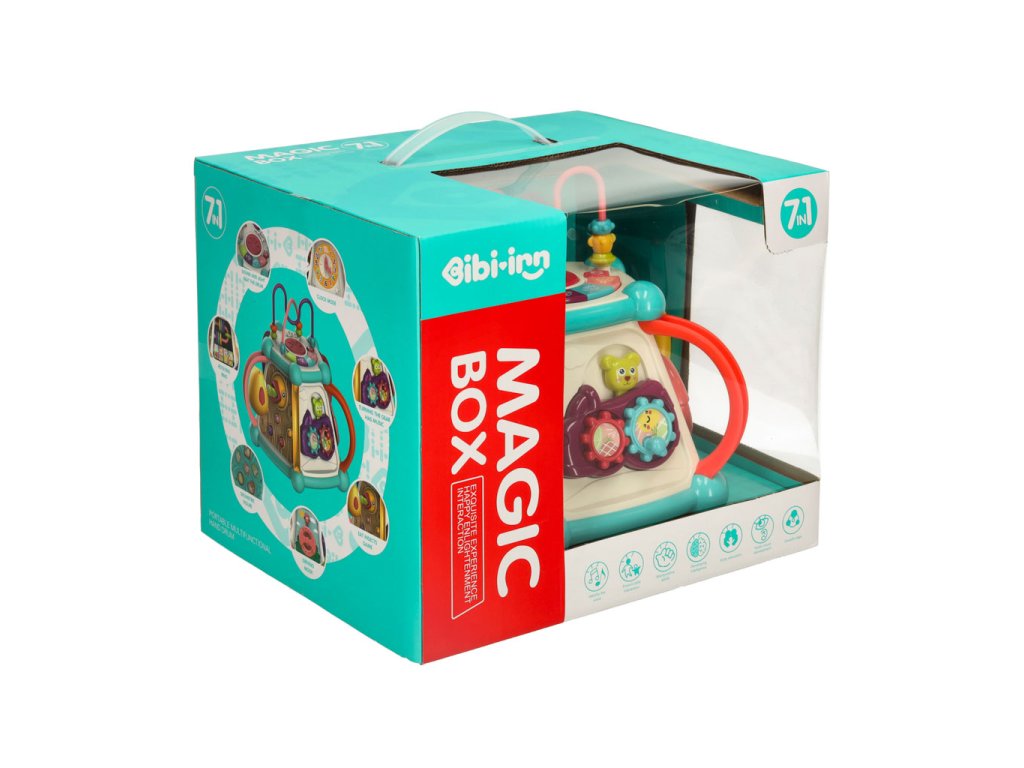 Každá strana kocky ukrýva nový prvok, ktorý treba objaviť. Rôzne textúry, farby, tvary a spôsoby interakcie s prvkami stimulujú zmysly dieťaťa a rozvíjajú jeho zvedavosť o svete. Hračka tiež poskytuje vynikajúcu príležitosť na učenie sa farieb a čísel.
