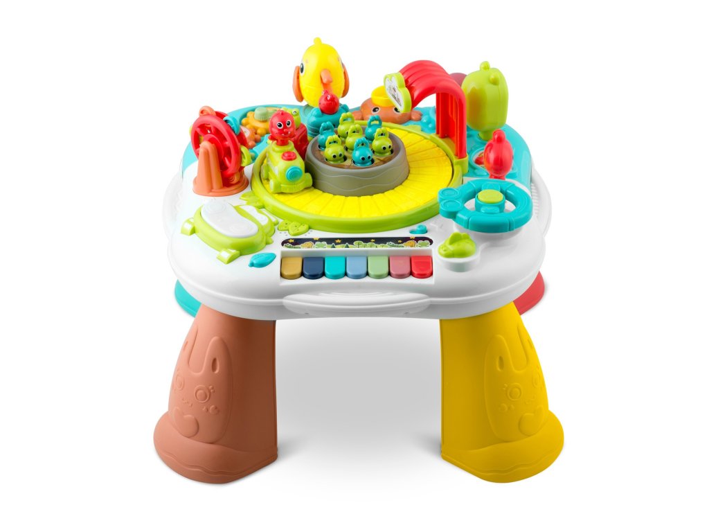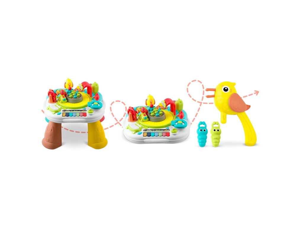 Produkt je ideálny na učenie farby. Odnímateľný panel sa dá použiť ako vzdelávacia tabuľa a po pridaní nožičiek sa rýchlo zmení na do vzdelávacej tabuľky.