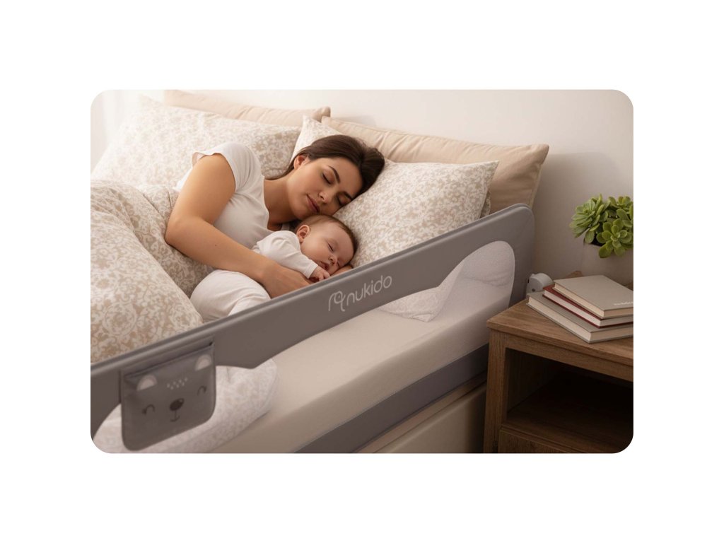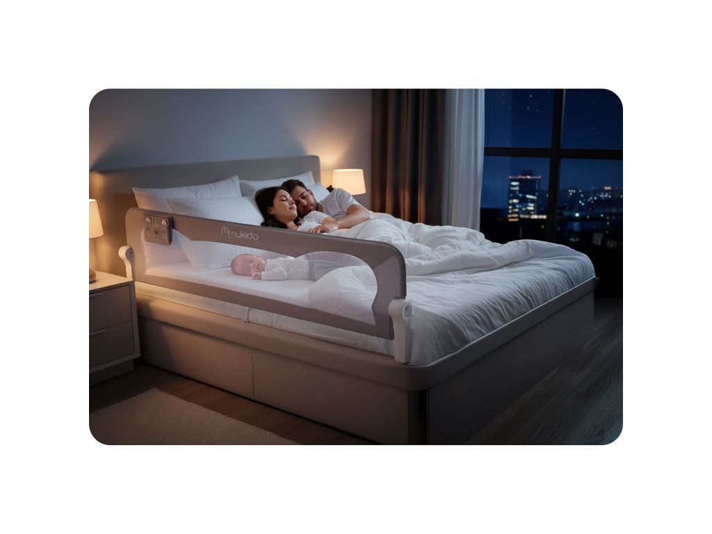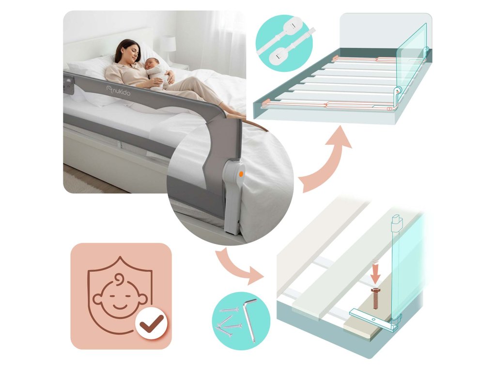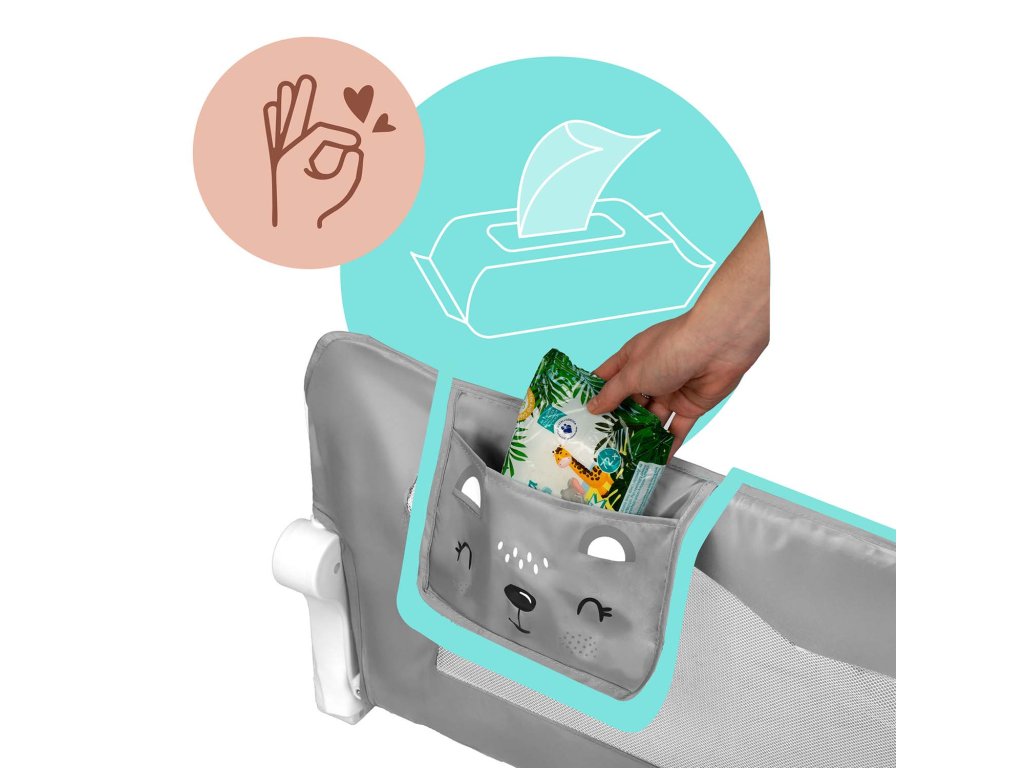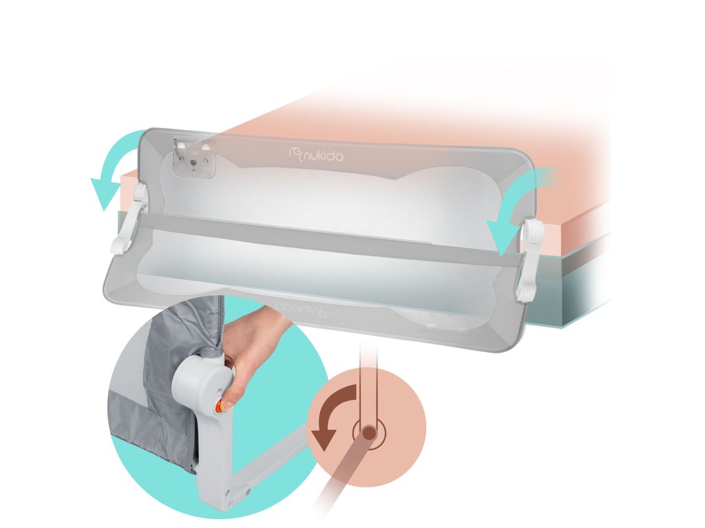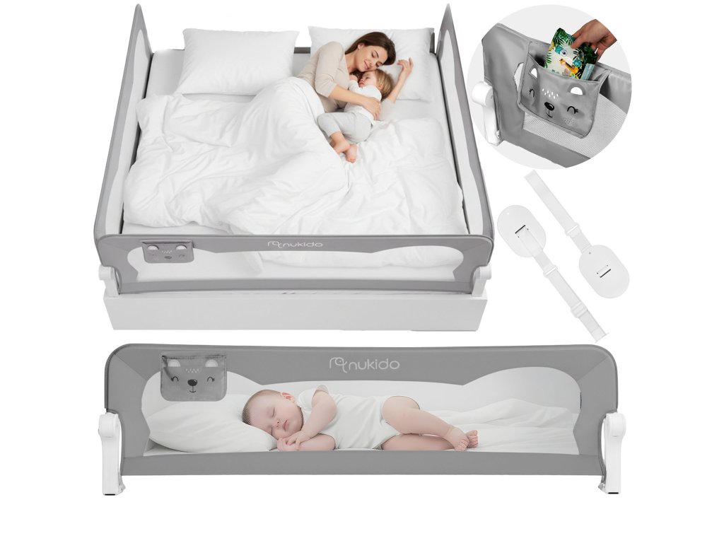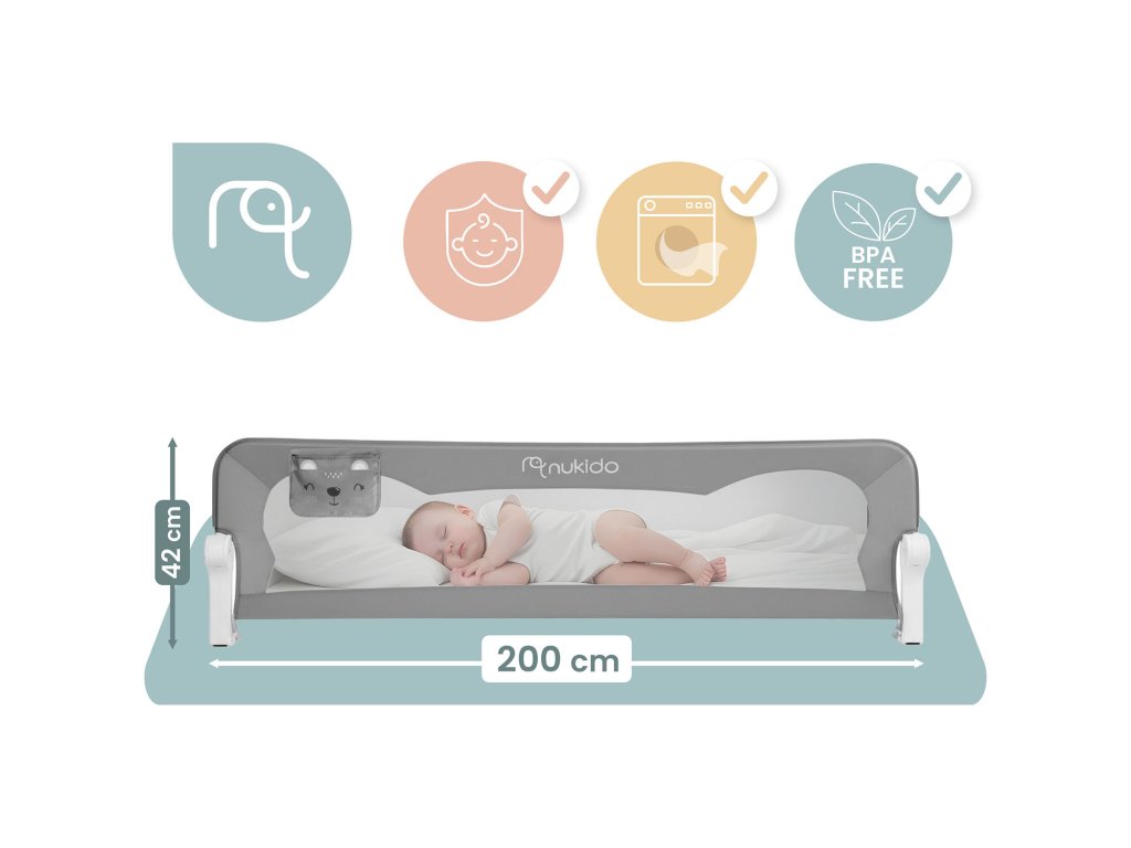 Bezpečnostná zábrana na posteľ s bezpečnostným zámkom 200 cm Nukido sivá