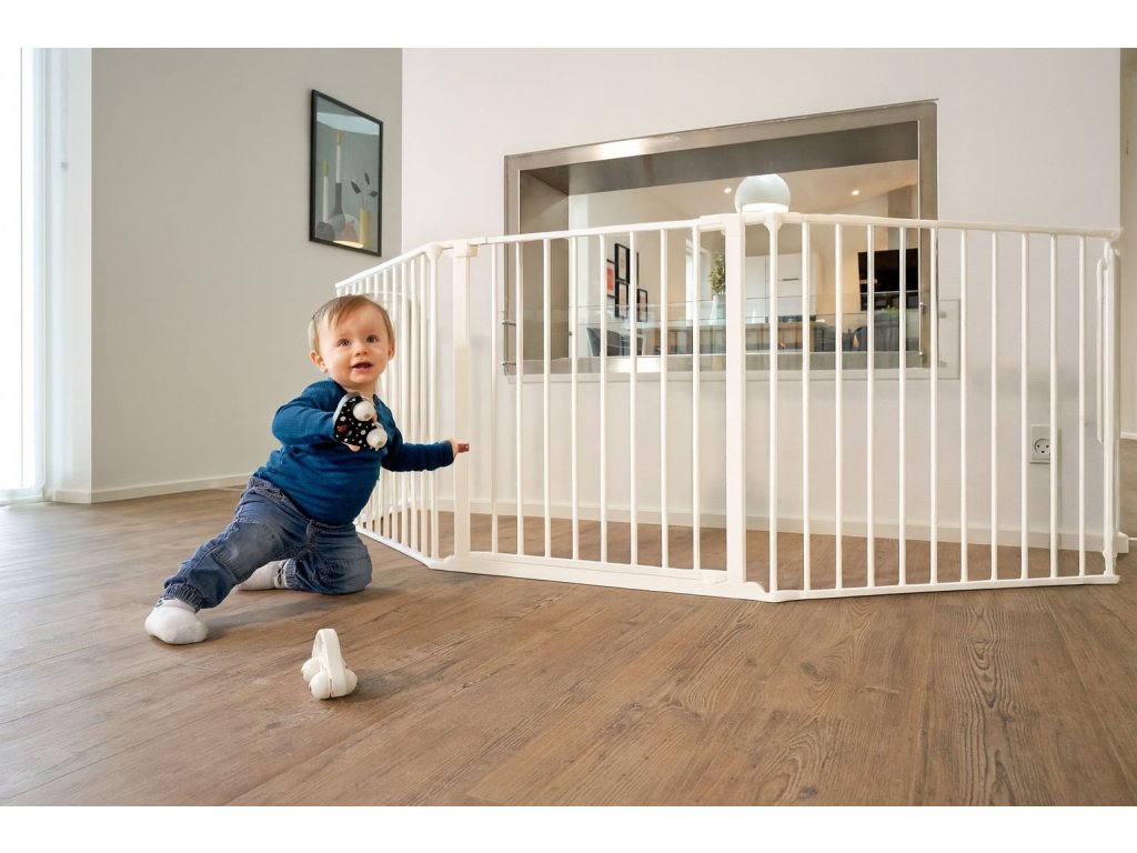 Rodičia chcú zabezpečiť, aby ich detibezpečné podmienky pre hru, minimalizovať riziko zranenia. Preto sú ochranné zábradlia a bezpečnostné brányzákladná súčasť domu s malým dieťaťom a chrániť prístup do nebezpečných priestorov, ako sú schody alebo kuchyňa. Tento model zábradlia umožňuje voľnú hru v bezpečnej zóne bez neustáleho dohľadu.Vďakamodulárna konštrukcia možno ho prispôsobiť priestoru - ako ohradu alebo uzavretú ohrádku. A nesmieme zabudnúť ani na pohodlie pre dospelých. Vstavaná bránka so zámkom vám umožní ľahko prejsť aintuitívny uzamykací systém funguje ako klasická brána - stačí stlačiť tlačidlo. Ide o praktický a univerzálny bezpečnostný prvok pre každú domácnosť.