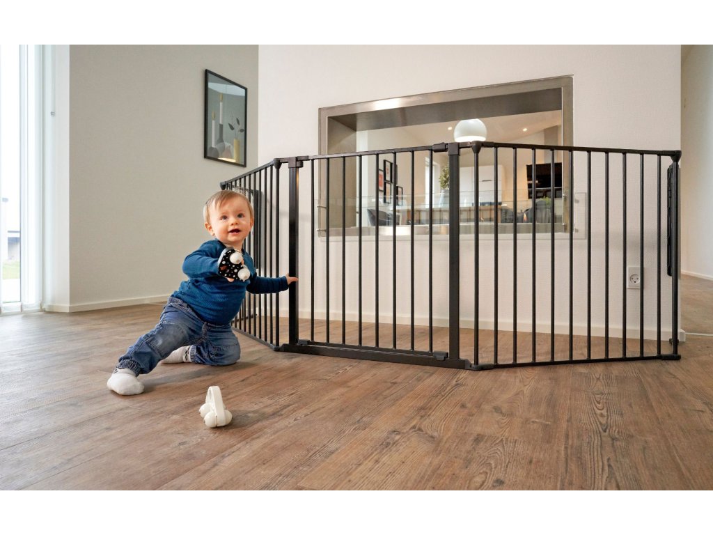 - Zabudovaná brána - stredový panel slúži ako dvere s bezpečným zámkom, vďaka čomu môžu dospelí ľahko prejsť, ale deti k nemu nemajú prístup.
