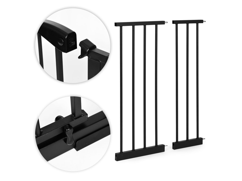Vďaka priloženému ďalšie prvky môžete rozšíriť štruktúru, brána ponúka nastavenie šírky z hľadiska 74 až 132 cm, čo umožňuje dokonalé prispôsobenie rôznym šírkam chodby a schody. Okrem toho môžete na nastavenie dĺžky konštrukcie použiť aj upevňovacie skrutky (8 cm) každý centimeter.