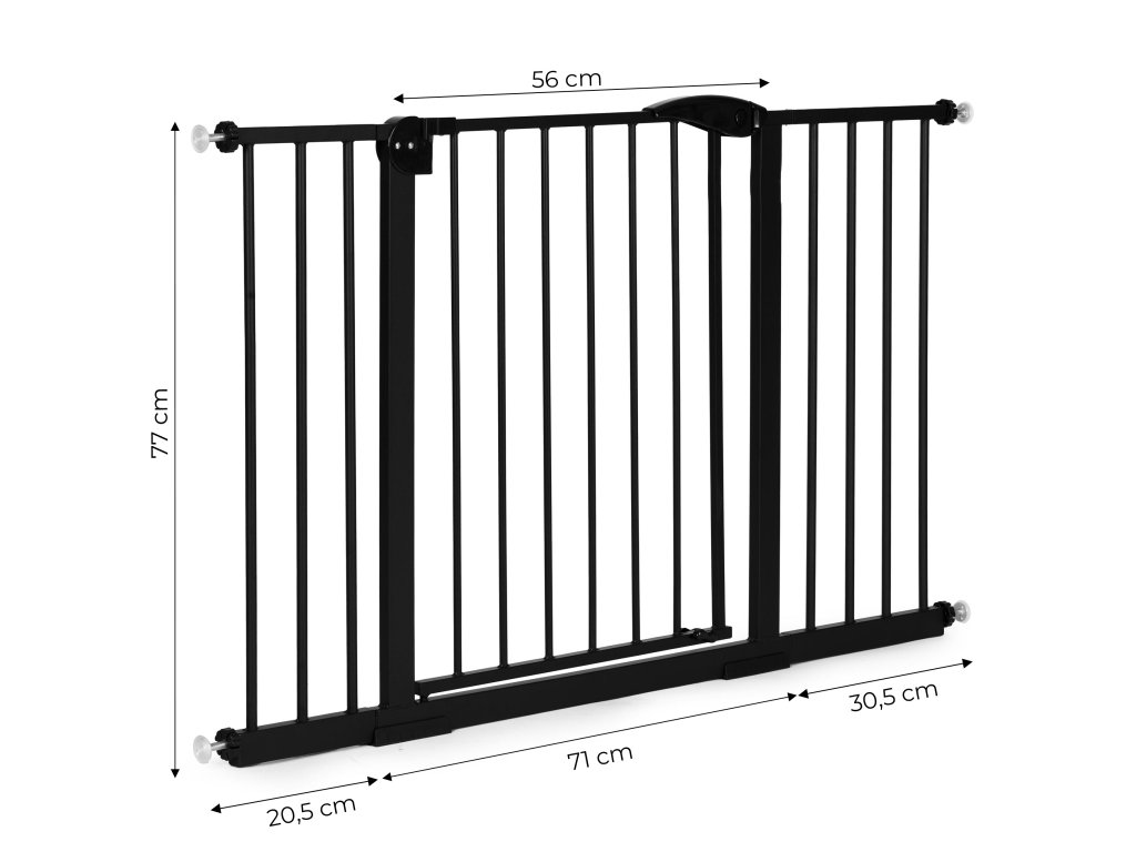 - Montáž brány je mimoriadne jednoduché a nevyžaduje si použitie žiadneho náradia ani vŕtanie dier do stien alebo zárubní. Vďaka 4-bodový upínací systém rozpera, bránka zostane pevne na mieste bez poškodenia povrchu. Okrem toho sú súčasťou balenia bezpečnostné podložky ochrana stien a podláh proti prípadnému poškriabaniu, čím sa zabezpečí estetický vzhľad priestorov.